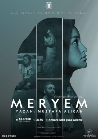 Filistin’de süren trajediye dikkat çekmek amacıyla Prof. Dr. Mustafa Alican tarafından kaleme alınan “Meryem”, 13 Aralık Cumartesi günü saat 20.00’de MEB Şura Salonu’nun sahnesinde yer alacak. Etkinlik, hem mesajı hem de sahne anlatımıyla Ankara’nın kültür-sanat gündeminde yer alacak.